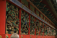 A cidade é pequena e estava super vazia, pegamos um táxi até o templo Toshogu, que é um dos cartões postais da cidade. Esse templo foi construído em 1634, empregando 15 mil artesões por dois anos – trabalho que é visto nos mínimos detalhes entalhados na madeira e em pinturas que adornam cada metro quadrado desse templo e dos prédios do complexo. Em volta, cedros japoneses altíssimos garantem o clima sereno e privativo. No topo, o mausoléu com as cinzas do shogun Tokugawa Ieyasu, líder da dinastia que governou o Japão por 250 anos.