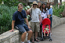 Voltamos para a Riverwalk e fomos até o final, que é o Rivercenter Mall, um shopping bem sem-graça (umas lojas bem bobinhas, incluindo várias de souvenirs de gosto duvidoso). Já caminhando no sentido oposto, voltando para o carro no final do dia, encontramos um amigo virtual do Gabe com sua família que mora em San Antonio e jantamos no restaurante The County Line BBQ. Na verdade todo mundo jantou e eu belisquei uns salgadinhos porque eu simplesmente detestei o molho barbecue desse restaurante (muito carregado no tomate e vinagre pro meu gosto, blargh!).