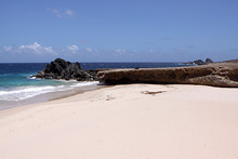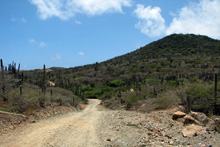 Continuamos rumo a Andicuri, e várias vezes pensamos em dar meia volta porque a estrada de terra e pedras (mais pedras do que terra) realmente é horrorosa, não recomendo a ninguém que vá com carro alugado. Demos sorte, o carro saiu intacto, mas levamos séculos para chegar, porque fomos muito devagarinho. A praia é bem bonita mesmo, as ondas fortes, uns garotos estavam pegando onda e não tinha mais ninguém na praia além da gente. O sol estava escaldante e como não tinha sombra e não dava pra entrar na água, ficamos pouco tempo (demoramos muito mais pra chegar do que o tempo que ficamos na praia, mas tudo bem). Resolvemos então tentar ir até a Dos Playa, uma outra praia remota no lado leste, mas depois de rodar bastante em uma estrada ainda pior, subindo, abandonamos a idéia.