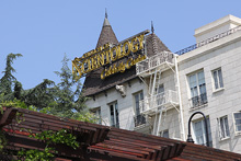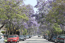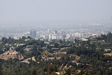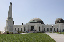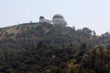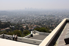 Começamos o dia dirigindo do nosso hotel, o Residence Inn Beverly Hills, até o Griffith Observatory, de onde se tem uma boa vista da cidade. Fomos sem pressa, admirando as árvores lindas de flores roxas e as palmeiras enfileiradas em muitas ruas. Passamos pelo prédio do centro de celebridades da igreja de Cientologia no caminho, e fomos subindo o morro por dentro do Griffith Park até o observatório lá no topo.