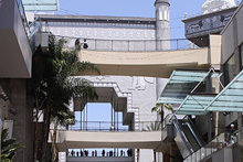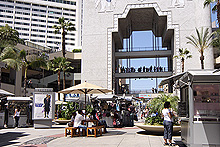 Continuamos andando pela calçada da fama até o Hollywood&Highland Center, um mega shopping onde fica o Kodak Theatre, que é onde acontece a entrega do Oscar todos os anos. A gente fez o tour do teatro ($15 por pessoa, 30 minutos de duração), passamos pelos bastidores, andamos pelo palco gigantesco e depois nos sentamos na platéia pra terminar de ouvir as curiosidades sobre o teatro. Engraçado que ele é muito menor do que parece na TV, não vou dizer que é pequeno, já que tem 3.300 lugares contra 2.300 do Teatro Municipal do Rio por exemplo, mas pela TV parece ter o dobro do tamanho que tem. Não é permitido tirar fotos dentro do teatro, infelizmente, segundo o guia do tour, em nenhum momento a fotografia é permitida, nem no dia do Oscar. Os vencedores são levados a uma sala de imprensa do lado de fora, em um prédio adjacente, para a coletiva e fotos, porque dentro do Kodak Theatre não se pode tirar fotos (ironia que um teatro que leva o nome de uma empresa de fotografia não permita fotos). O Cirque du Soleil está preparando um espetáculo novo que vai ser apresentado somente no Kodak Theatre começando em 2010.