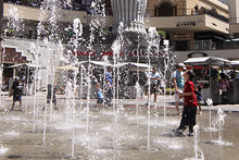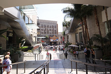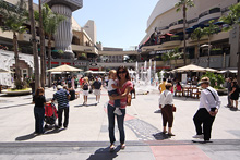 O Hollywood&Highland Center é um shopping megalomaníaco, apropriado para a cidade sede da indústria de filmes. Uma praça central aberta com o chafariz que você pode passar por dentro faz a festa das crianças que entram de roupa e tudo. Julia ficou olhando, ela não tem coragem de entrar por enquanto.