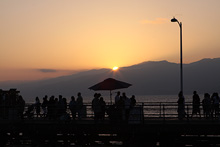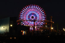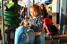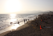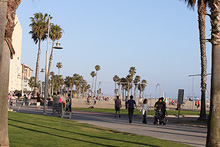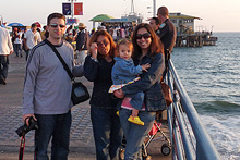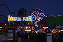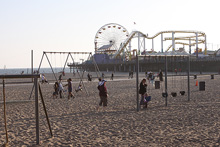Prosseguimos na direção do oceano Pacífico, rumo a Santa Mônica. Estacionamos pertinho do Pier, que faz 100 anos este ano. A praia estava cheia, muita gente andando, correndo, crianças brincando no parquinho, Julia estava tirando uma soneca e não viu. Acordou quando estávamos já no pier. O Pier tem um carrossel histórico que estava fechado para uma festa particular, um parque de diversões tradicional com a roda-gigante, uma montanha russa e outras coisinhas, restaurantes, uma academia de trapézio… Julia brincou um pouco nos tradicionais bichinhos que se mexem quando você coloca moedas. Depois do pôr-do-sol jantamos ali mesmo no Bubba Gump Shrimp, o restaurante temático do filme Forrest Gump, que tem uma bela vista da praia. Estava uma barulheira danada por causa do jogo de basquete passando na TV: o time local, Los Angeles Lakes, estava perdendo e virou nos últimos minutos. A comida é gostosinha, a nossa garçonete foi super simpática e quando errou na sobremesa não pensou duas vezes e trouxe outra de graça.