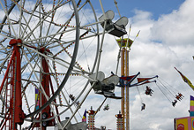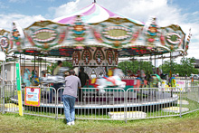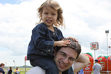 Hoje foi o último dia do Grosse Ile Island Fest, que acontece todos os anos aqui na ilha. O festival vai de sexta a domingo, tem um parquinho de diversões à moda antiga, e outras atividades para crianças e adultos (parada com música, show de carros antigos, etc). A gente levou a Julia no parquinho pra ela brincar mas ela não gostou nem um pouco do barulho, além de estar já enjoadinha porque não tirou a soneca dela da tarde. Ficou o tempo todo no colo, não quis ir a nenhum brinquedo, só ficou olhando. Acabamos voltando logo pra casa, e ela dormiu no carro no trajeto (nem 10 minutos).