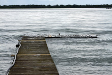 No final do dia a água do rio começou a subir e acabou cobrindo a doca da minha sogra inteira! Inacreditável! O nível da água normalmente fica mais de um metro abaixo da plataforma, aparentemente as chuvas de ontem e de hoje (em afluentes do rio) são as culpadas. Começou a chover de novo a noite, pelo menos não teve alerta de tornado dessa vez.