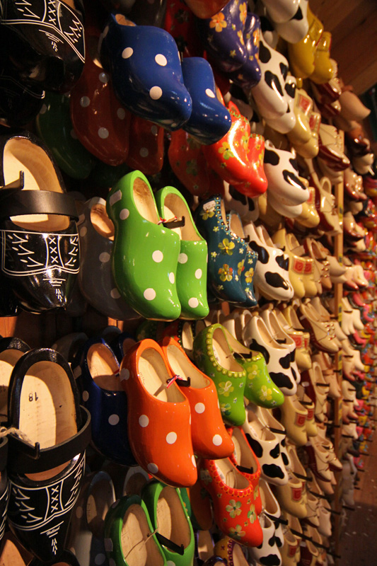Depois do almoço (lento como sempre) continuamos andando na cidadezinha até o workshop de tamancos. Julia caiu no sono no carrinho mesmo e acabou nem vendo nada, uma pena, porque eu queria tirar uma foto dela experimentando os tamanquinhos! Os funcionários fizeram uma demonstração rápida de como eles fazem os tamancos, e tinha um vídeo passando que explicava a produção também. Tinha tamanco de tudo quanto é tamanho, cor, muito legal – só não eram baratos. Acho que o mais baratinho que eu vi começava em 40 euros. Como eu não tinha espaço na mala pra levar mesmo, foi bom pra não ficar tentada a comprar um.