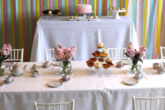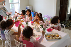 UAU! Amei. Achei tudo perfeito, acho que se colocasse mais coisa ia estragar. Eu ja fiz cha la em casa pras adultas, eh sempre muito gostoso. Mas acho que ia ainda ser mais divertido se colocassemos chapeus e luvas. 😉