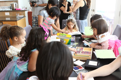 Lembrancinha: um livro The Paper Bag Princess e um caderno de desenho pra cada uma (promoção linda da Michaels vendendo caderno de desenho capa dura 100 páginas por 2 dólares cada, arrematei).