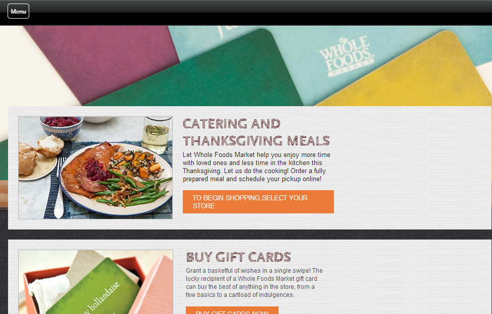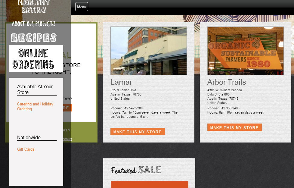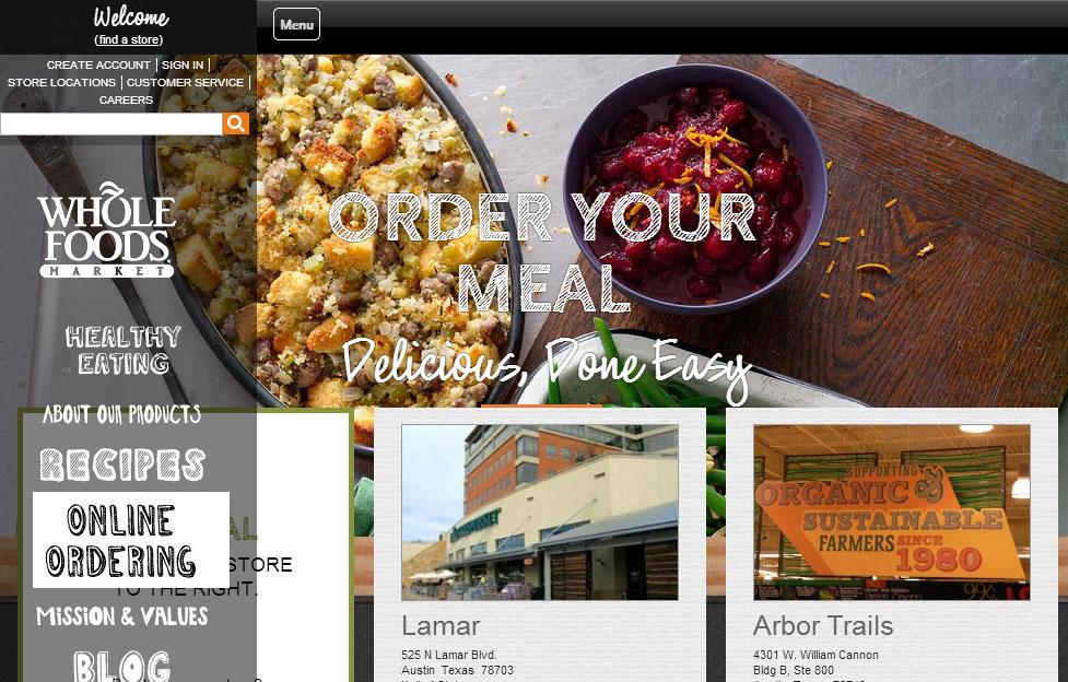 2. Clique no menu do topo (Menu) pra abrir as opções ou no menu do lado esquerdo (dependendo da sua resolução ele já aparece inteiro), clique em Online Ordering e depois na opção Catering and Holiday Ordering.