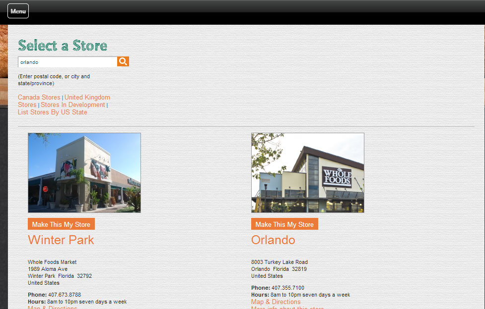 3. Aí você tem que clicar em To begin shopping, select your store e na página seguinte, escreva o nome da cidade e clique OK. Na lista de lojas que vão aparecer os resultados, clique na loja mais próxima de onde você vai estar e clique Make this my store. Atenção: eles acabaram de fazer uma mudança no site e no momento, depois de selecionar a loja, você vai ter que ir novamente no menu e repetir os passos clicando em Online Ordering e depois em Catering and Holiday Ordering de novo pra ver as opções da loja que você selecionou. Acredito que isso seja um problema temporário, veremos.