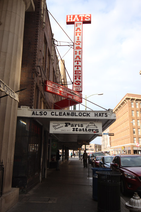 Aproveitei pra deixar as crianças com o Gabe pra conferir uma loja de chapéus de cowboy super famosa e tradicional ali pertinho, a Paris Hatters. Eles tem todas as marcas conceituadas de chapéus, incluindo a Stetson, que é conhecida como a melhor. Nem sabia que existia diferença, mas tem chapéus para o verão (que são de uma palha fina bege clarinha) e para o inverno (forrados com tecidos, bem mais grossos, e de cores escuras como preto, marrom, etc). O dono da loja é um senhor super vaidoso que tem um monte de clientes celebridades, e foi me mostrando os seus favoritos em fotos na parede (até o Papa!). Ele disse que se receber um pedido do Brasil, ele manda o chapéu sim, então se alguém aqui quiser encomendar, está valendo! Eles tem chapéus que vão de $40 a mais de mil dólares, que são os feitos sob medida. Os clientes do dia-a-dia? Fazendeiros texanos, claro, se engana quem pensa que são os turistas. Eles vendem botas também, super bonitas, mas bem caras (as famosas Lucchese custam na faixa de $500 pra cima).