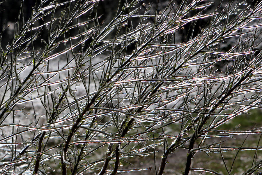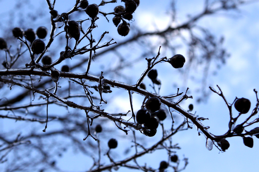 Pra quem não sabe: tempestade de gelo – freezing rain ou ice storm – é quando a chuva cai e congela na superfície de tudo que está molhado. É perigosíssima, porque o gelo pesa nos galhos de árvores, fiação elétrica, e volta e meia os galhos não aguentam o peso e quebram, muitas vezes em cima da fiação. Felizmente não ficamos sem energia. Mas a paisagem fica espetacular como vocês podem ver, ao vivo é ainda mais impressionante porque o sol faz o gelo brilhar, o que não dá pra captar muito bem nas fotos. Só estando no local pra conseguir ver toda essa beleza perigosa! É uma paisagem de sonho, não parece de verdade.