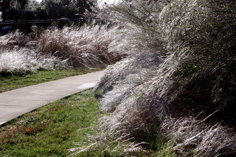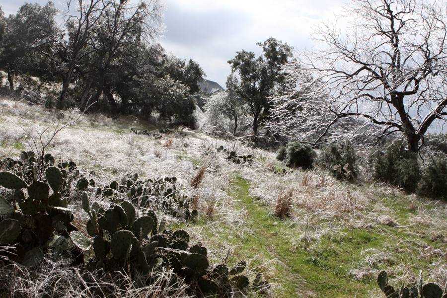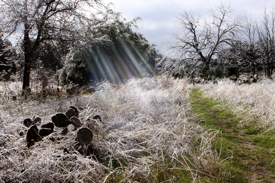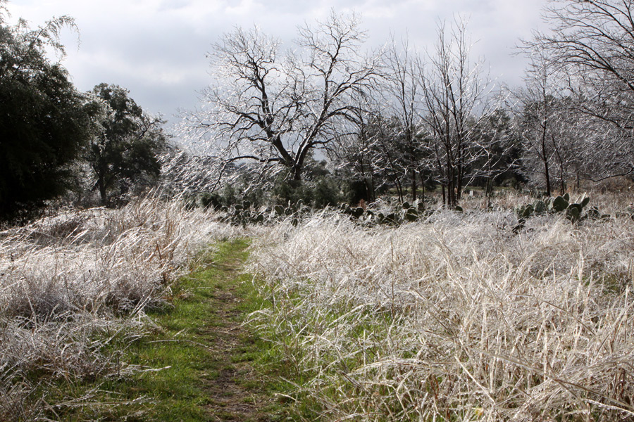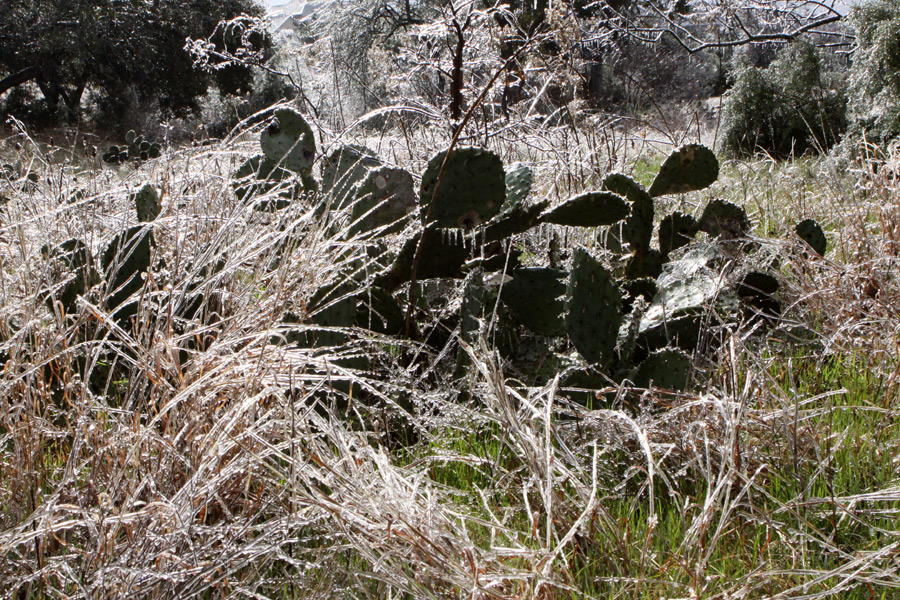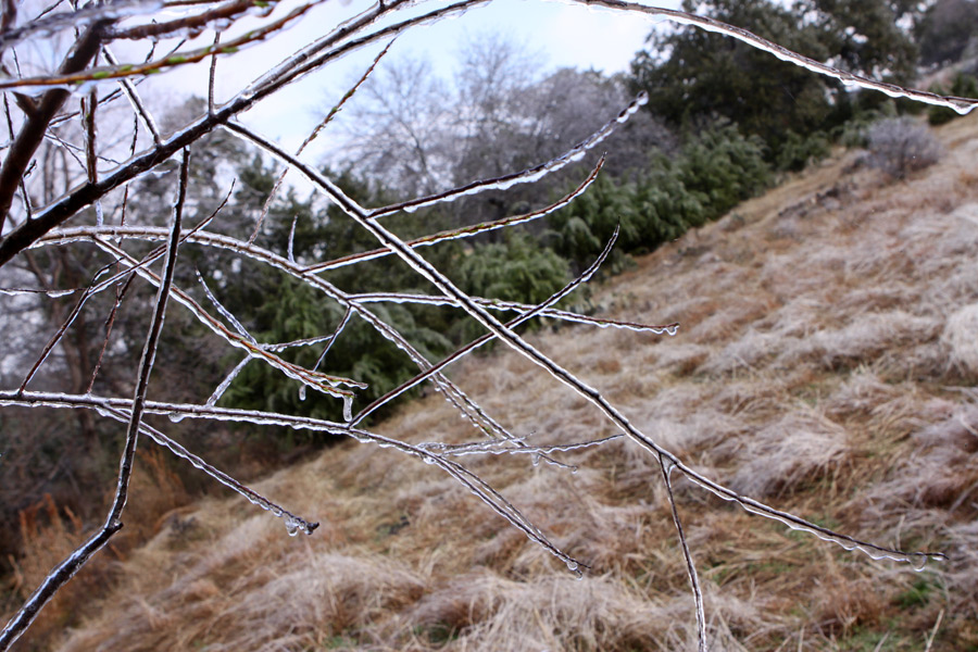 Noite passada tivemos mais uma tempestade de gelo nesse inverno, já perdi a conta de quantas tivemos esse ano, completamente fora do normal – principalmente em março! Essa tempestade foi uma das mais impressionantes porque realmente congelou tudo por muitas horas, quando acordei de manhã e vi todas as árvores do meu quintal cobertas de gelo, pulei da cama, coloquei as roupas de neve e fui pra rua fotografar. Andei até uma área de trilhas aqui do condomínio onde moramos que tem um riozinho, muitas árvores e cactus, pra ver como estava a paisagem congelada. Vocês conferem as fotos, essas são as 30 que eu achei as melhores das centenas de fotos que tirei.
