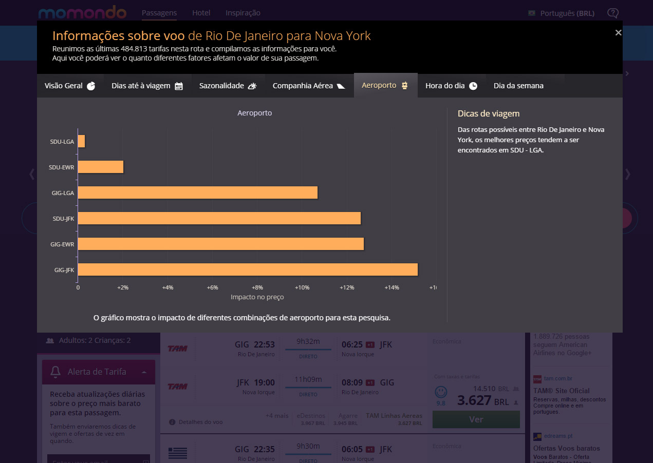 Você vai clicando nas outras abas e vai vendo mais detalhes e dicas, até mesmo de quando é melhor comprar e que aeroporto costuma ter os vôos mais baratos!