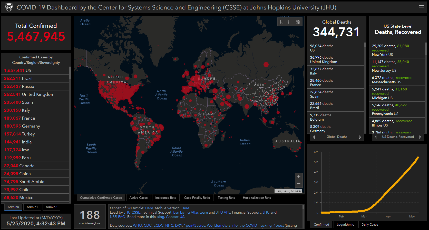 No mundo são 5.467.945 casos confirmados de Covid-19 e 344.731 mortos; sendo 1.657.441 casos confirmados nos Estados Unidos, com 98.034 mortos. Na Flórida temos 51.746 casos confirmados com 2.252 mortos e semana passada uma funcionária que atualiza os números foi demitida porque não aceitou manipular os dados para diminuir os casos.