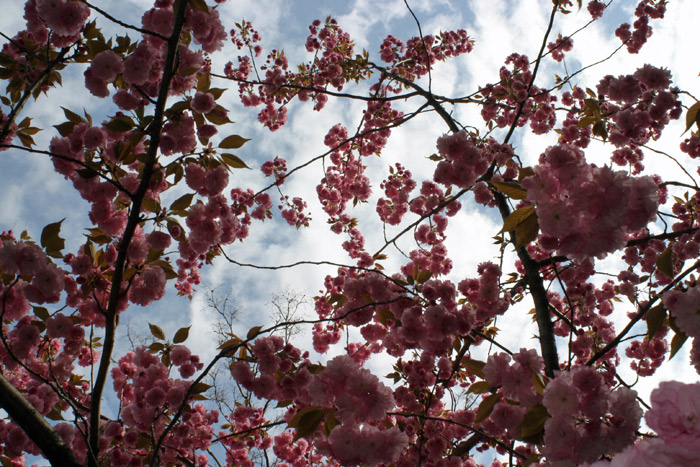 E aí estão elas, todas juntas, finalmente! Todas as tulipas que plantamos em novembro passado, depois de transformarmos esse pedaço estéril entre o caminho da garagem e a cerca do vizinho em um jardim. Nas fotos abaixo as nossas outras tulipas e a cerejeira que fica na frente da casa.